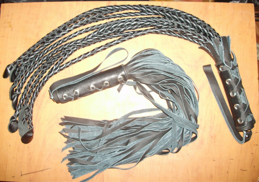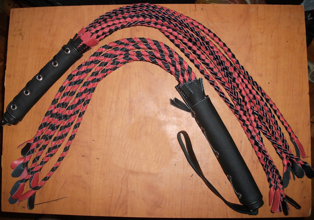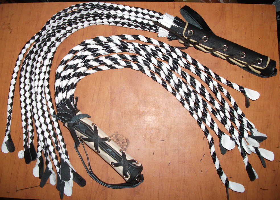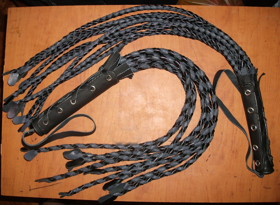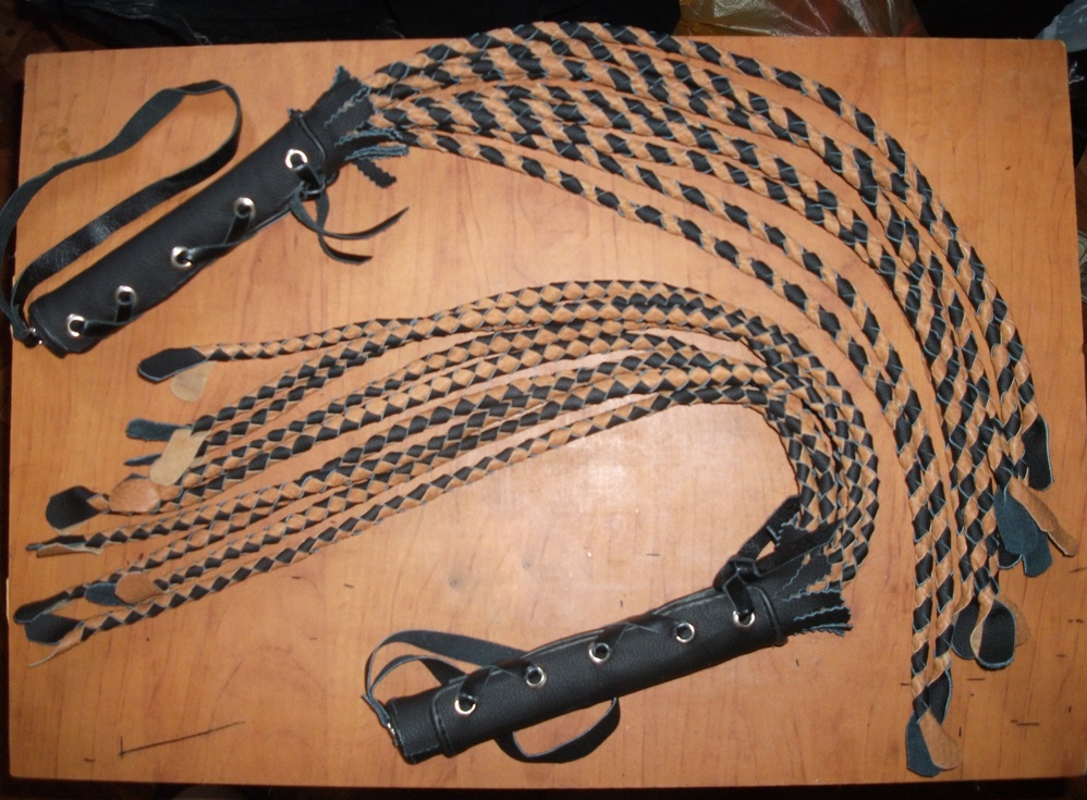 Кошка - ударный девайс, состоит из 7-9 хвостов. На фото представлены кошки разного цветового оформления и плетения, выполненные из натуральной кожи.